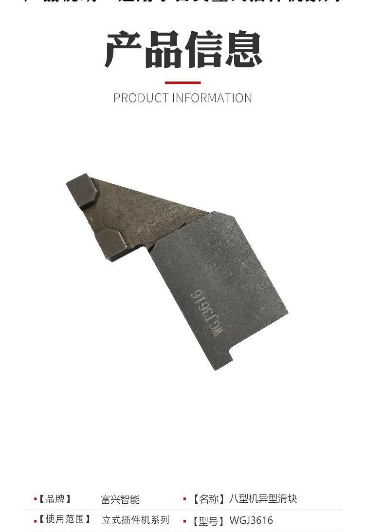 【品牌】富兴智能 【名称】八型机异型滑块【使用范围】立式插件机系列 【型号】WGJ3616富兴智能装备有限公司...